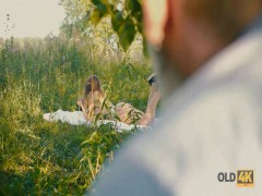 OLD4K. Posh girl came to clearing to be nailed by the older tourist